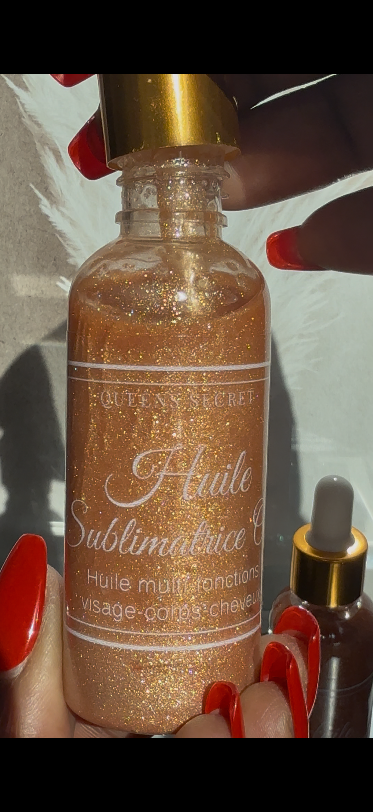 Donnez à votre peau un éclat bronze, Or ou perlé sublime avec l'Huile sublimatrice de chez Queens Secrets !
