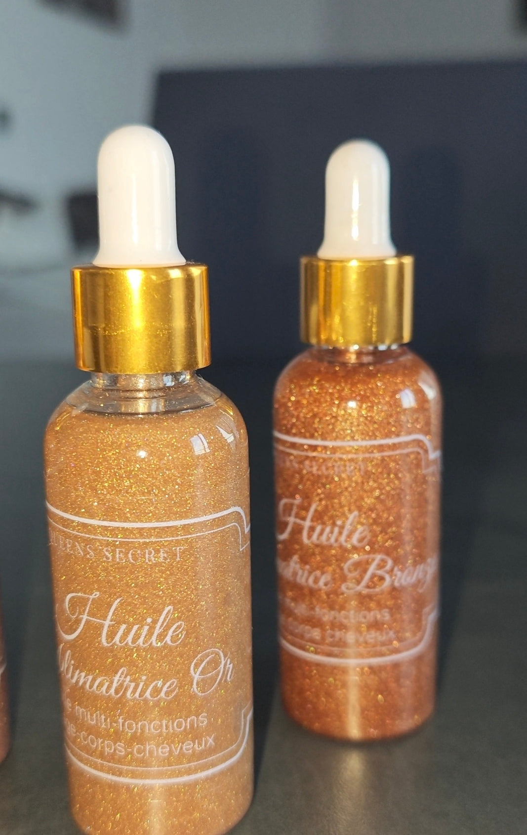 Nos huiles de soin nacrées et lissante, s'applique sur le corps, le visage et les cheveux, tout en nourrissant .